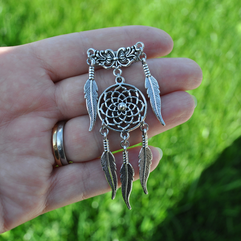 Decorative Native American style hair barrette with arrows and dreamcatcher