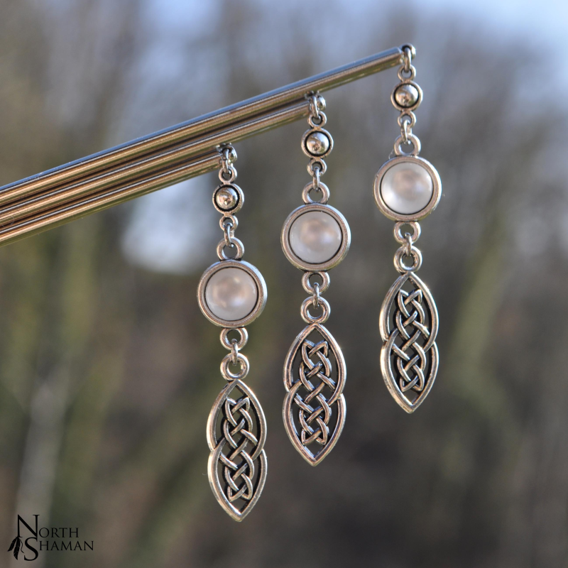 Fine metal hairstick with a interlaced knot and a white resin stone