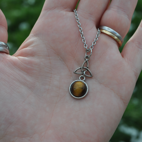Un petit Triquetra entrelacé avec une pierre d'Oeil de Tigre. Un côté celtique mais assez moderne.