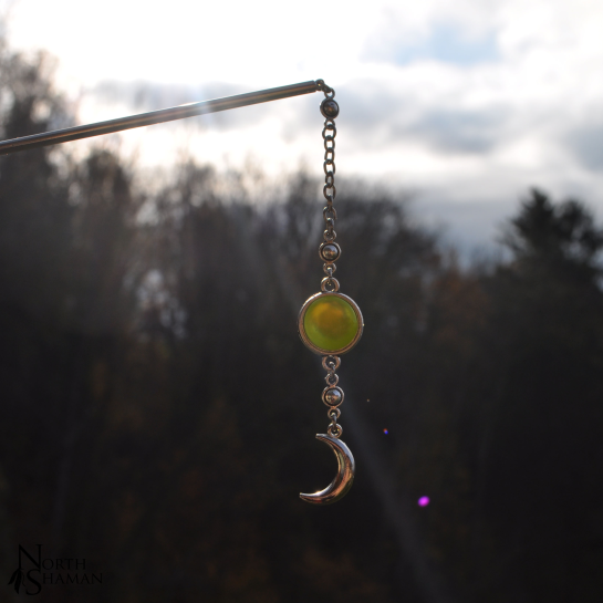 Pique à cheveux en métal avec une décoration croissant de lune et pierre de résine vert citron